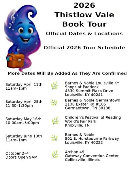 Thistlow Vale Book Tour may be coming to a Barnes & Noble, book festival or convention near you, in 2026!